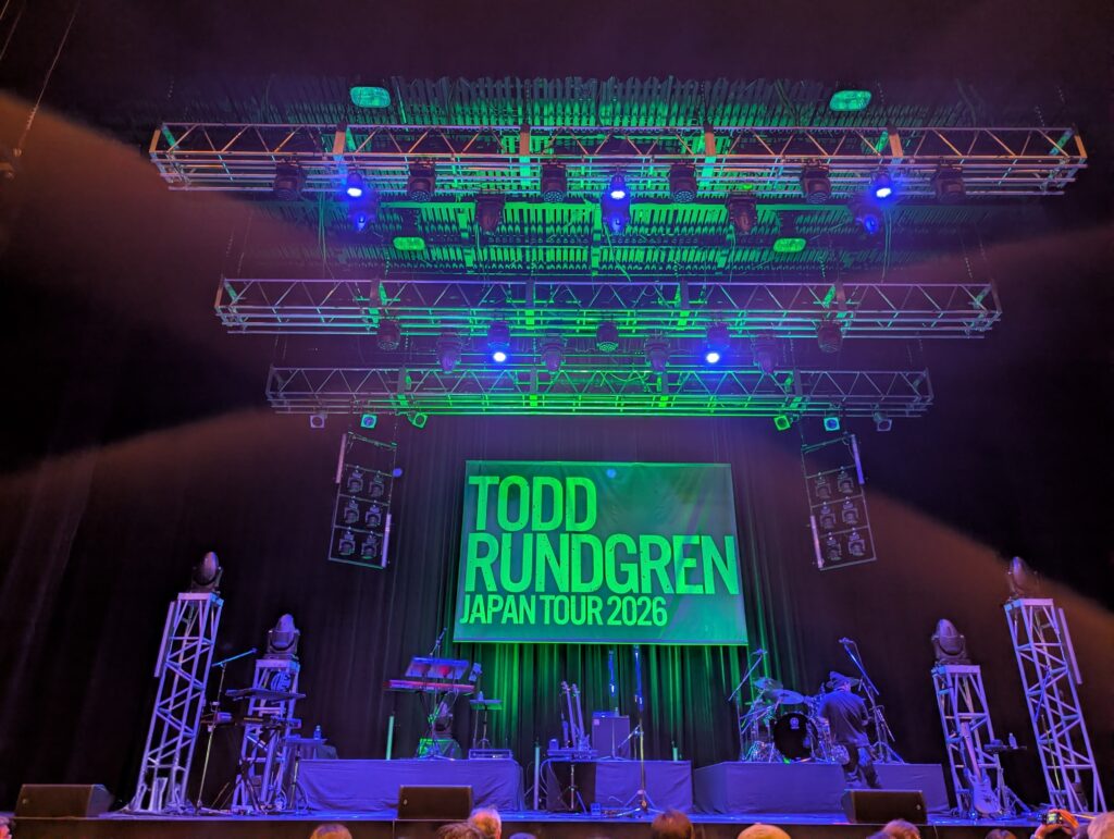 なので、行くのは少し迷ったのですが、彼の音楽は音一つ出ただけ、ワンフレーズ歌っただけで Todd Rundgren とわかる強烈な個性があるので、たぶん曲がわからなくても楽しめると踏んで思い切って行ったのでした。